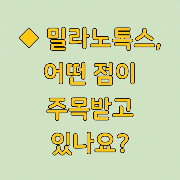 ◆ 밀라노톡스, 어떤 점이 주목받고 있나요?